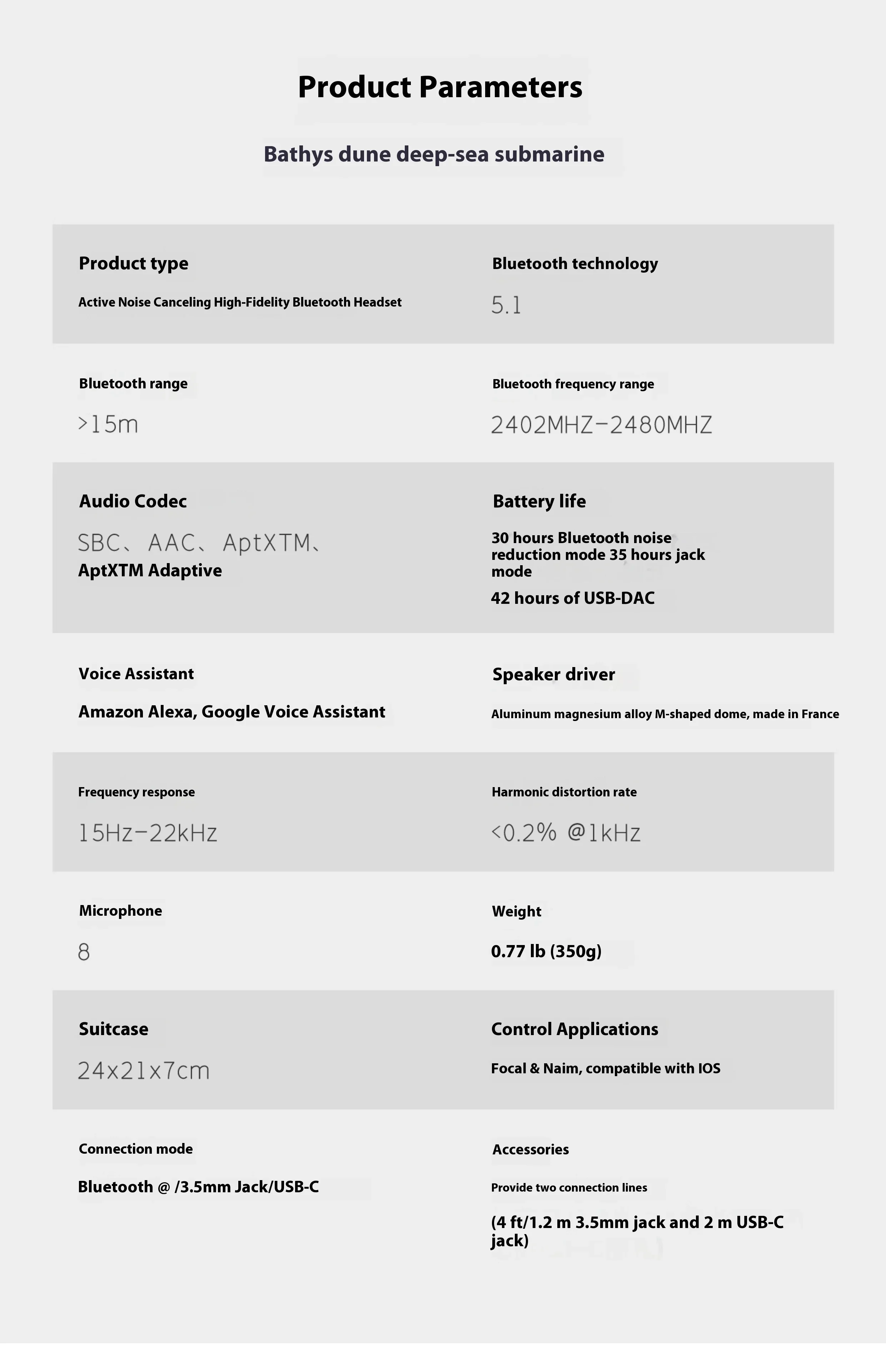 Bathys Wireless Bluetooth Headphone Active Noise Reduction Wired Gaming Headphone music Customize EQ 3.5mm/USB-C Headset Gifts